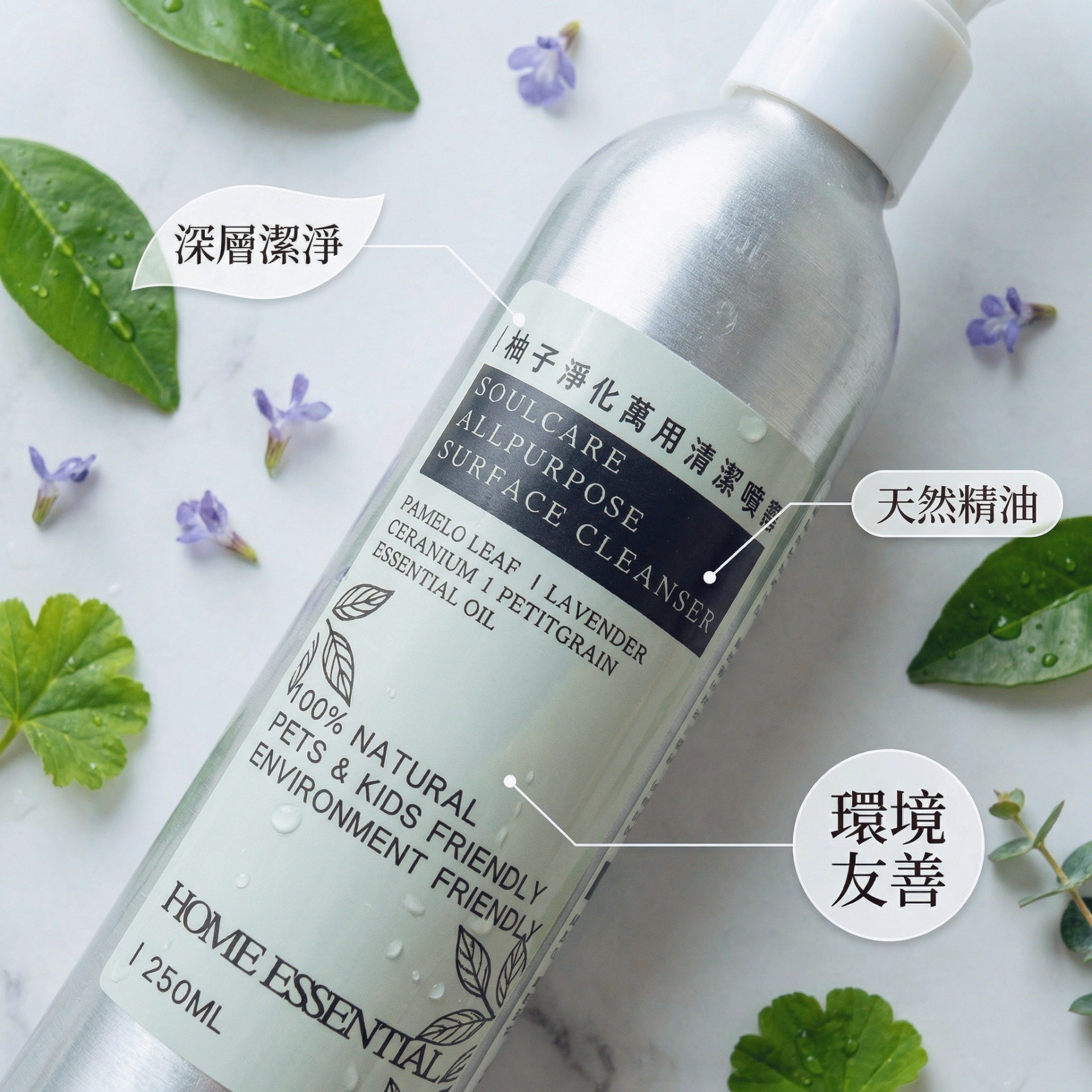 特別添加清新明亮的碌柚葉與苦橙葉天然精油香氣,潔淨每個家居角落同時淨化空間氣場。